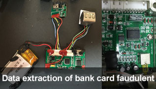A certain place occurred many bank card faudulent cases,the police captured many bank card duplicators through on-site investigation.Since there is no data communication interface in bank card replicator and the memory chip of bank card replicator uses EEPROM (linear FLASH),only professional chip-off forensics equipment can read the image file of this kind of memory chips. We used RH-6900 to read and analyze the EEPROM memory chip of the replicator, successfully extracted all bank card information recorded in the device,after restructuring the data,we got the key evidence.