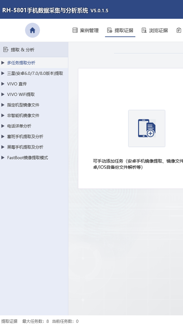 支持多種鏡像提取方式,包括:Android系統(tǒng)ADB模式鏡像提取、高通9008/9006模式鏡像提取、MTK/展訊芯片Android系統(tǒng)手機(jī)鏡像提取、超級(jí) Adb模式鏡像提取、Fastboot模式鏡像提取。