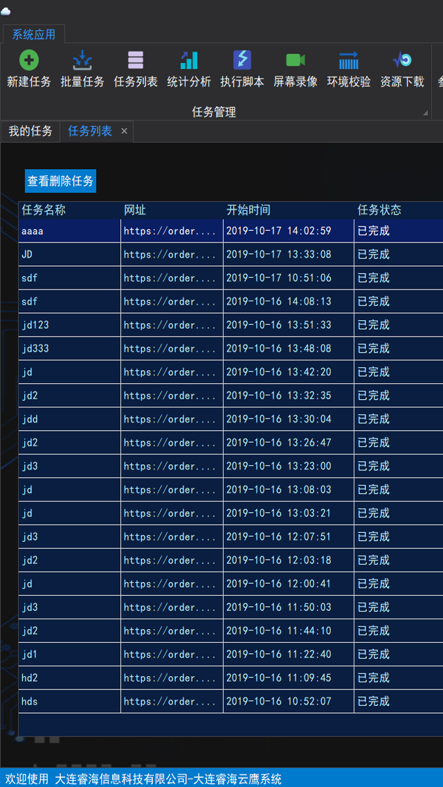 任務信息:可顯示任務列表信息,以及其他操作??梢圆榭唇貓D、獲取的URL、任務目錄、校驗碼查詢、重新執(zhí)行任務、刪除任務等操作。